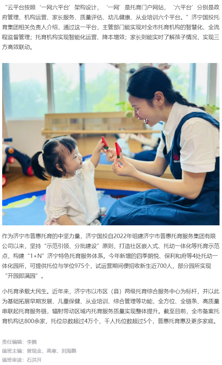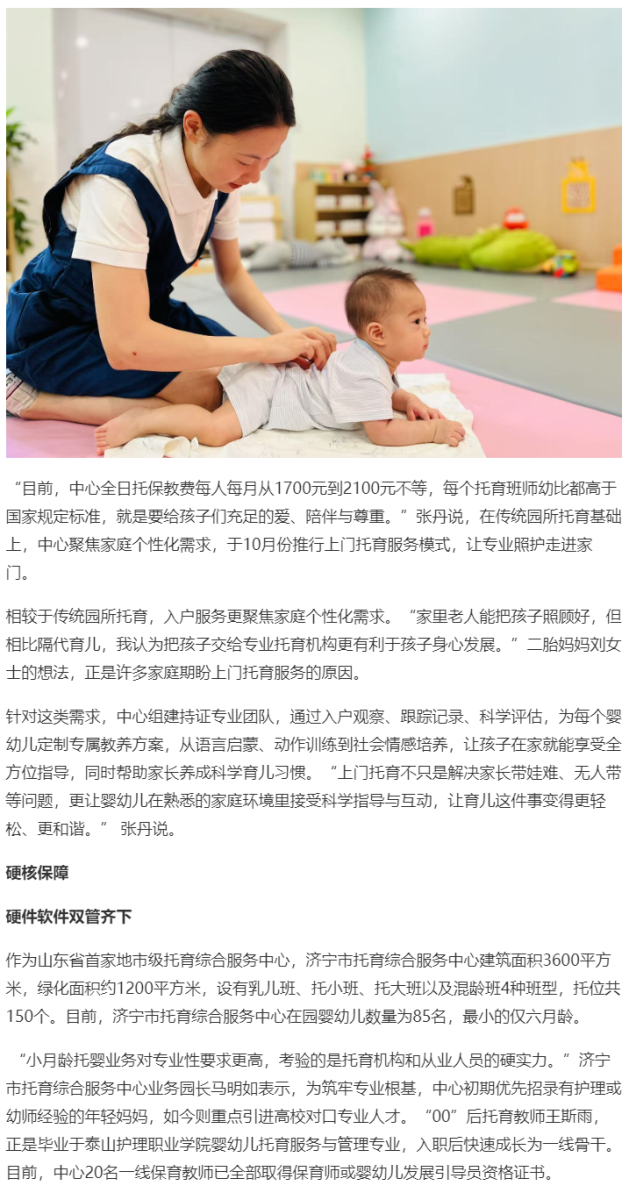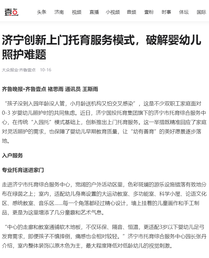 《齐鲁晚报·齐鲁壹点》| 济宁创新上门托育服务模式,破解婴幼儿照护难题